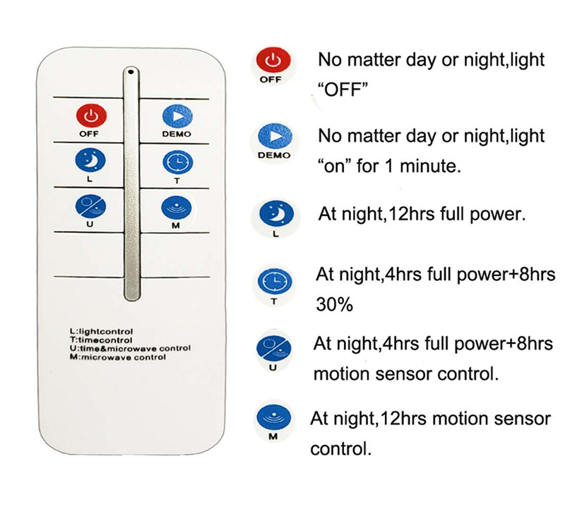 - රාත්රී සංවේදකය + මයික්රෝවේව් චලන සංවේදකය + දුරස්ථ පාලකය
