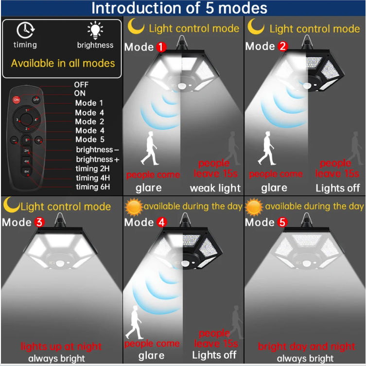 2. 3 රාත්රී මාදිලි සහ ටයිමර් ඉහළ සංවේදී චලන සංවේදක විශේෂාංග සහිත මෙම සූර්ය ගෘහස්ථ ආලෝකය
