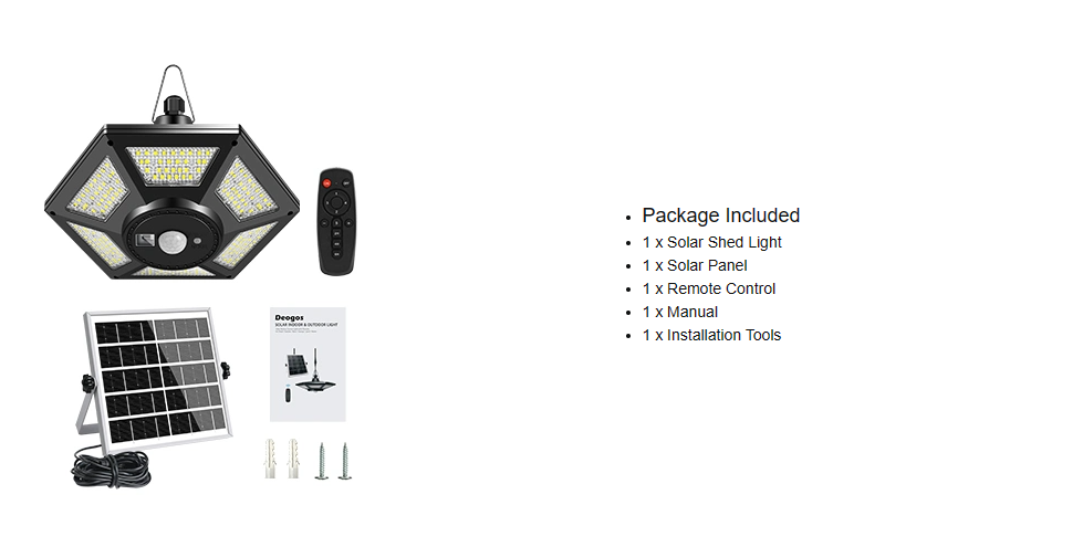 LED 180 කින් lumen 1000 ක් නිපදවන මෙම සූර්ය සාප්පු ආලෝකය ඕනෑම අඳුරු ප්රදේශයකට හොඳින් යයි.